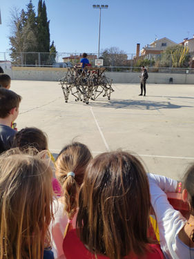 Demostración y taller práctico ofrecido a los alumnos y profesores de la escuela primaria Marta Mata de Barberà del Vallès con motivo del estudio del mecanismo de Theo Jhansen, el cual esta inspirada la Tecno Araña. Un placer poder participar a nivel pedagógico a través del arte y de la cultura y más con chicas y chicos tan agradecidos como los de esta escuela. Una experiencia muy gratificante y que sin duda nos gustaría repetir.